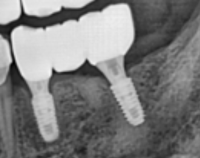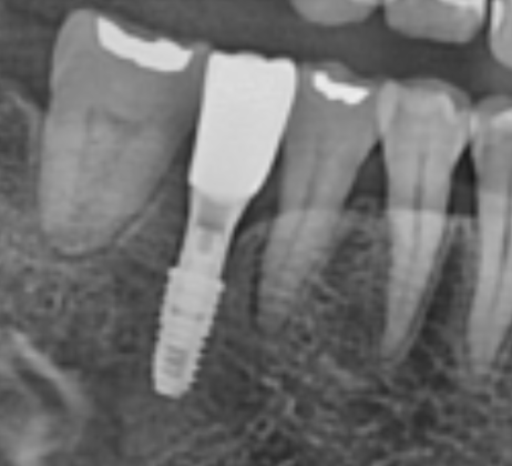 작은어금니와 큰어금니 사이에, 큰어금니 하나가 상실되어 임플란트로 회복된 모습입니다.