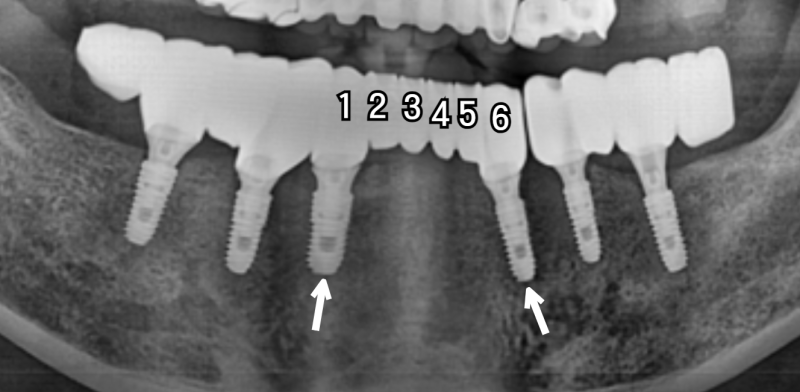 따라서 위 사진처럼, 픽스쳐는 2개만 심고 브릿지 형태로 치아 6개 역할을 할 수 있습니다.