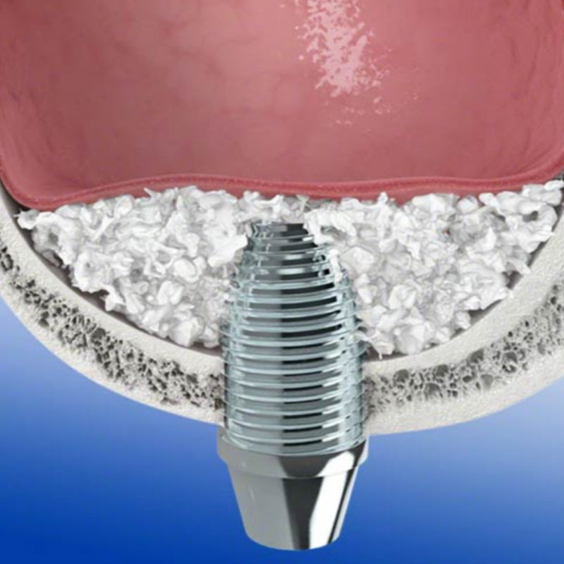 보셨듯이 뼈이식을 위해 이미 구멍을 뚫었기 때문에, 임플란트를 심을 때 또다시 구멍을 낼 필요가 없다는 게 장점입니다.