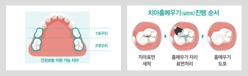 국민 건강보험에서는 치아 홈메우기 치료를 18세 이하 의 미성년자 소아에 한해서 지원을 해주고 있습니다.